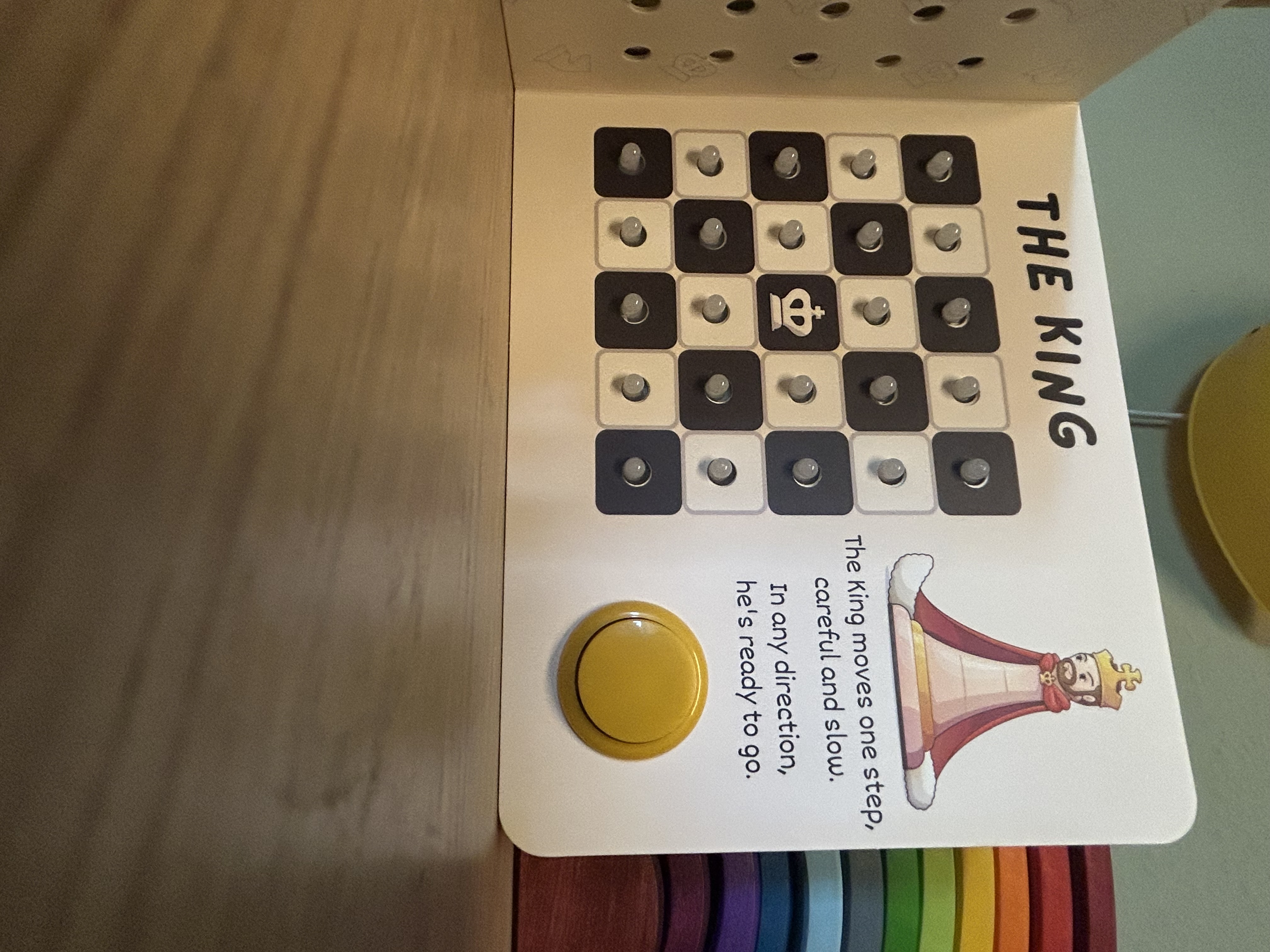 My 2yo daughter is always pressing the button now and exploring the charming world of chess.